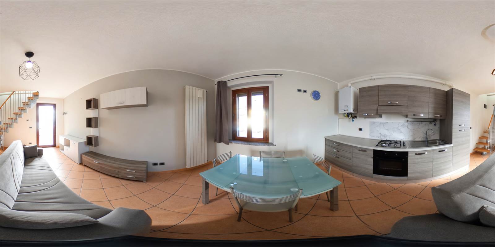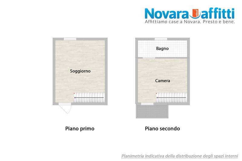 L'alloggio è composto, al primo piano, da ingresso nel soggiorno con cucina a vista; la scala interna mette in comunicazione con il secondo piano dove troviamo la camera, il bagno FINESTRATO (sprovvisto di lavatrice) con box doccia ed il BALCONE.