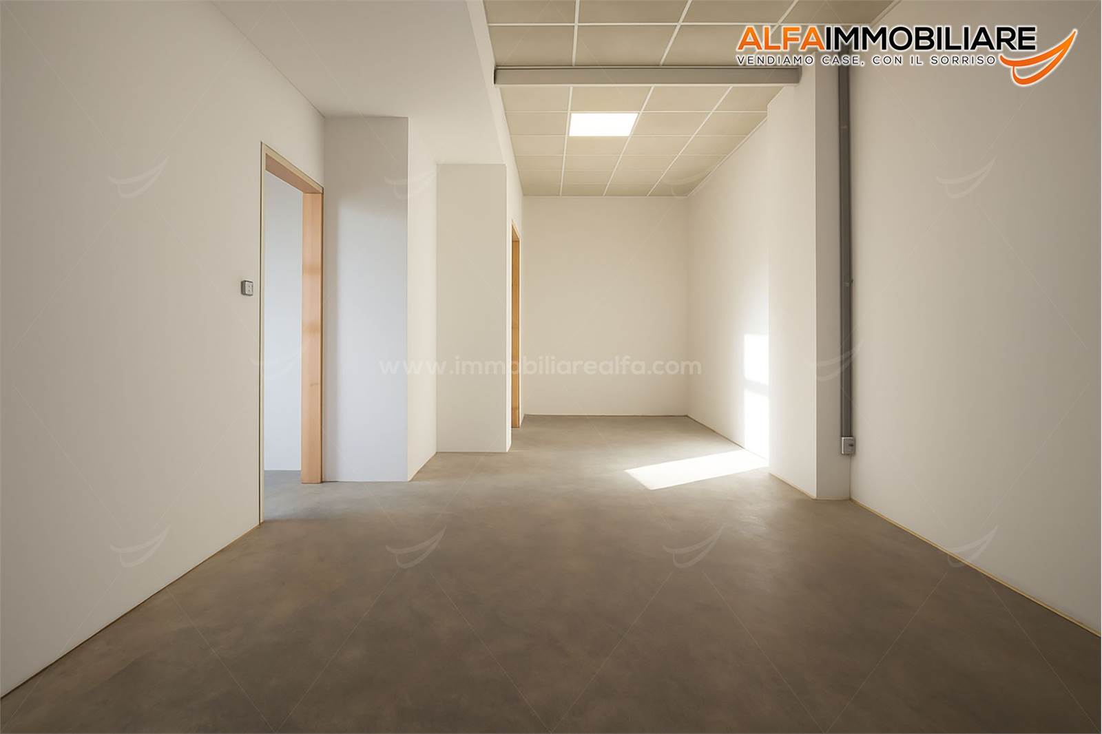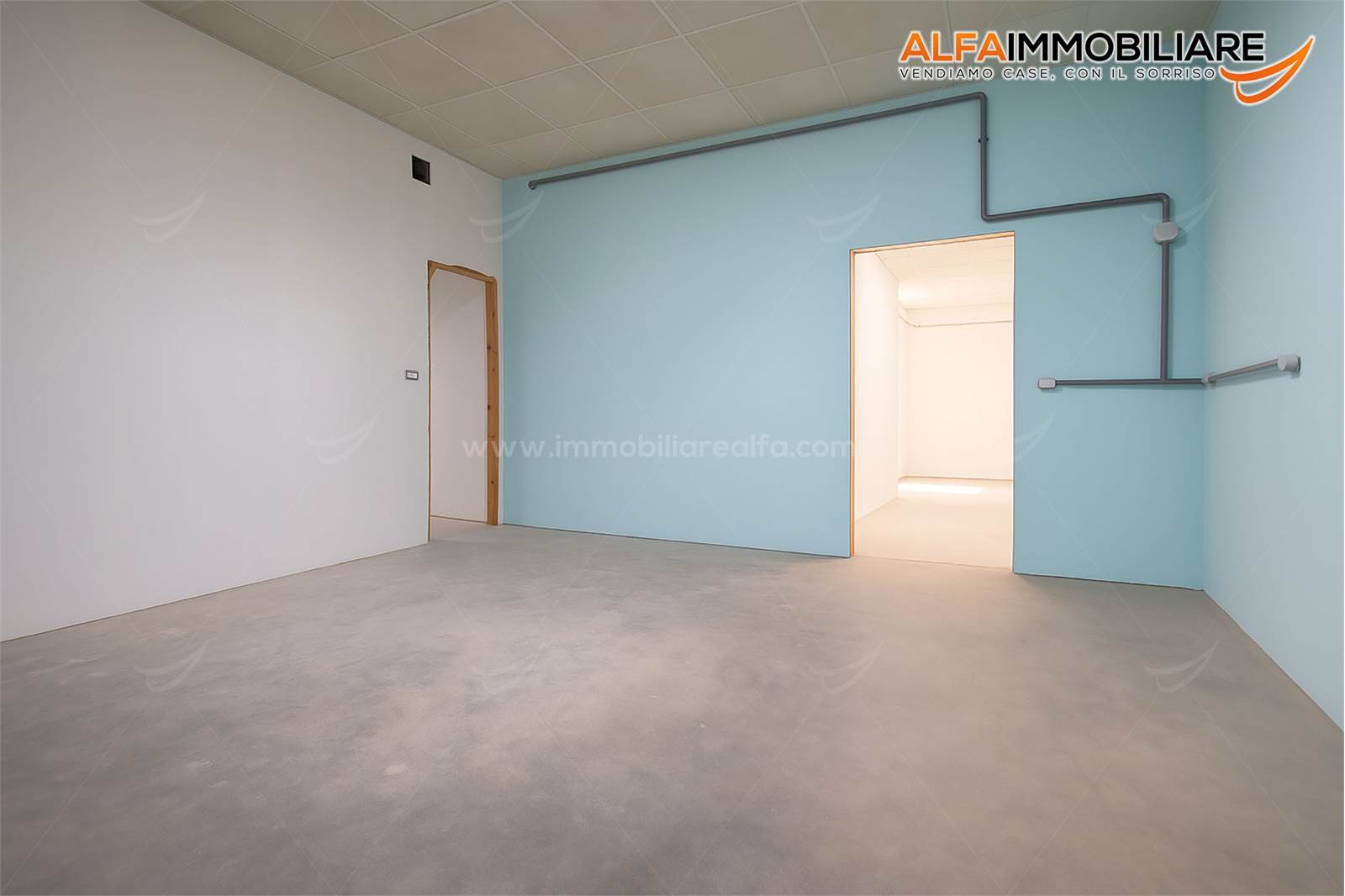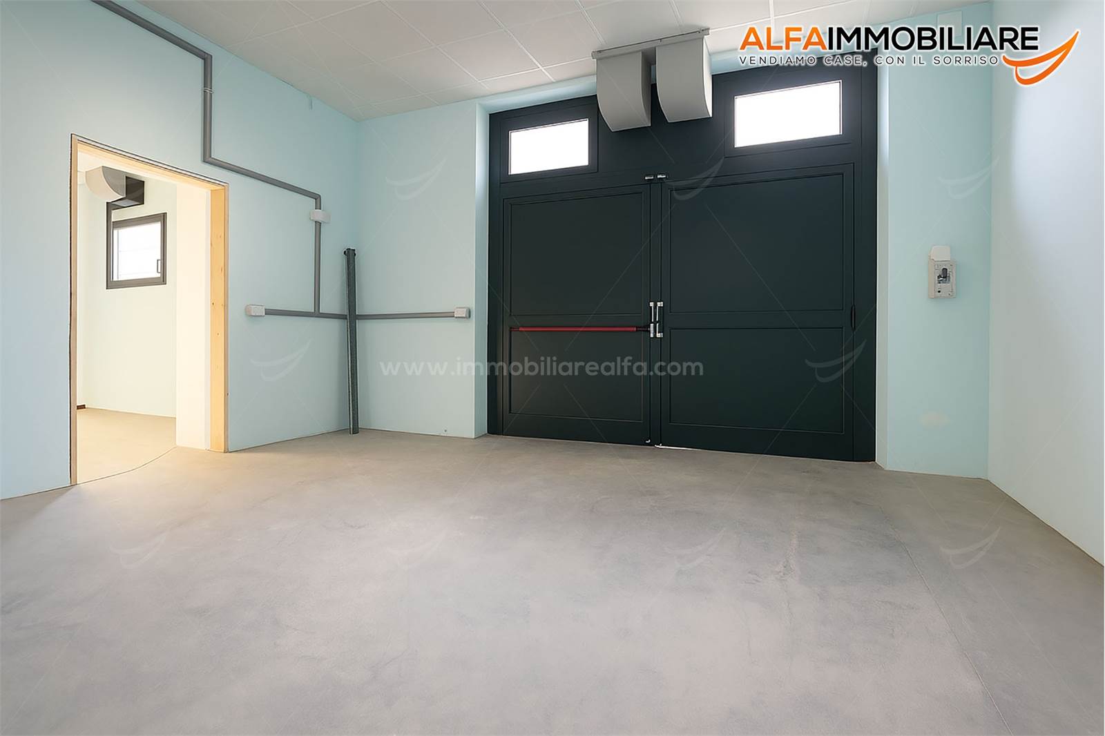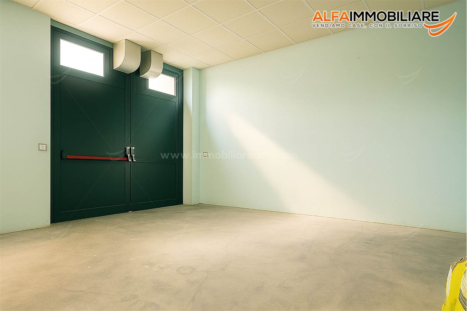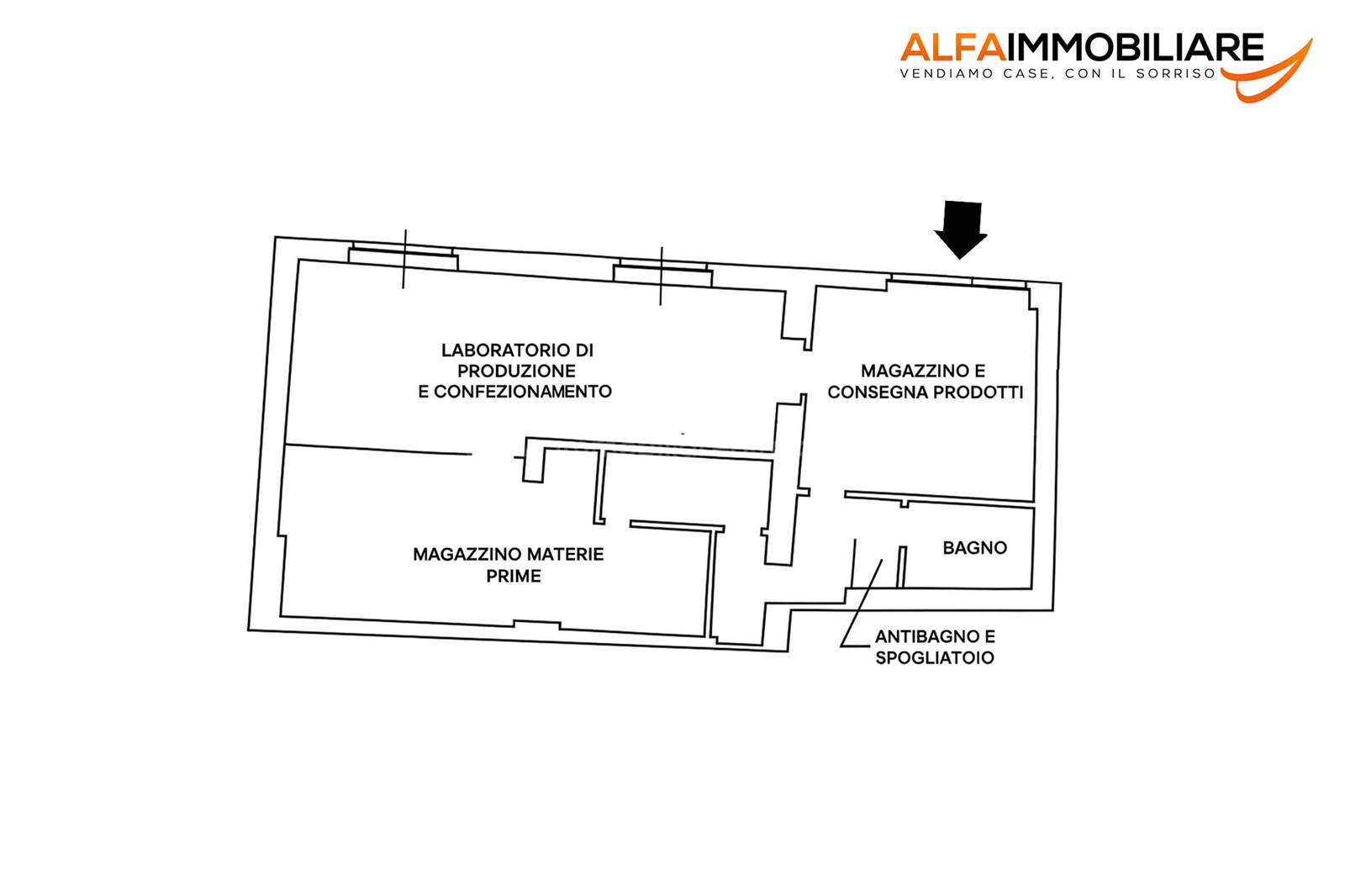 L'ingresso è indipendente ed avviene dalla via Bazzani tramite portone a doppio battente, ideale per carico/scarico merci. La zona di lavorazione è adeguatamente aeroilluminata ed offre una superficie generosa. Completano questa offerta un locale magazzino con annesso disimpegno, utilizzabile come archivio/ripostiglio, un antibagno/spogliatoio ed un bagno interno.
