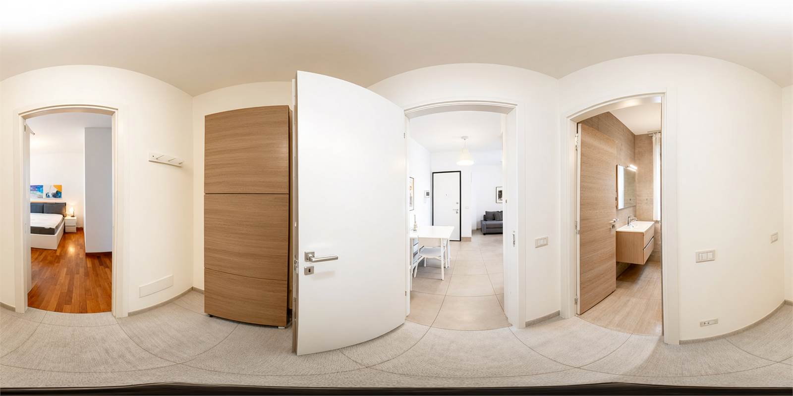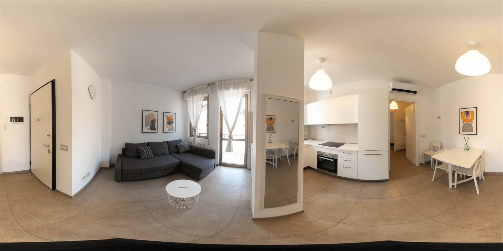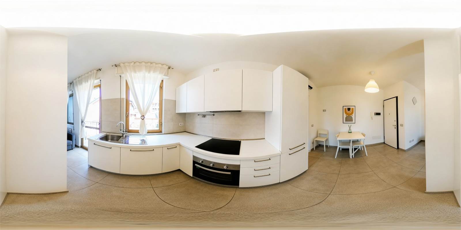 L'alloggio è composto da ingresso nel soggiorno con DIVANO LETTO e accesso al BALCONE, angolo cottura dotato di PIANO A INDUZIONE e LAVASTOVIGLIE, disimpegno con armadiatura e LAVASCIUGA, bagno FINESTRATO con box doccia e camera matrimoniale con LETTO CONTENITORE.