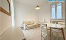 L'immobile è composto da ingresso nel soggiorno dotato di cucina a vista con PIANO A INDUZIONE, angolo studio con poltrona e scrivania, camera con DUE LETTI SINGOLI, bagno FINESTRATO con box doccia e piccolo RIPOSTIGLIO con lavatrice.
